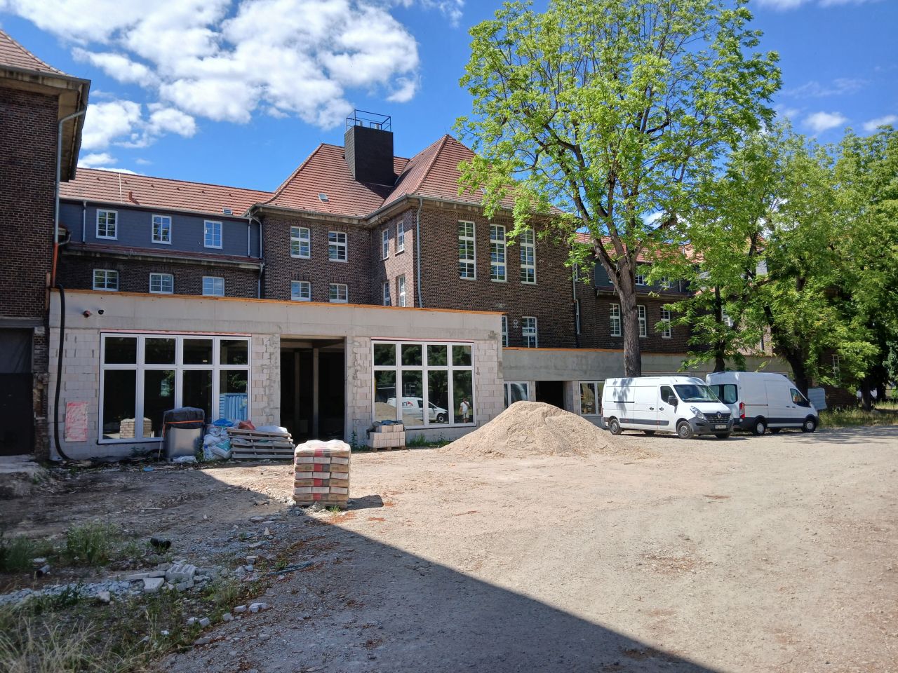 Die Arbeiten gehen voran: Der Speisesaal „wächst“ und der Anbau bekommt sein Dach.